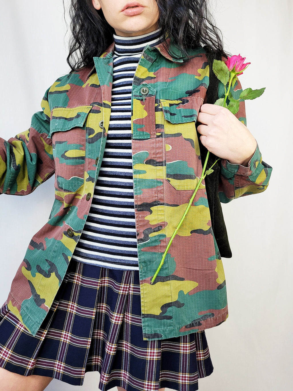 Vintage 90s green camouflage unisex oversize shacket jacket