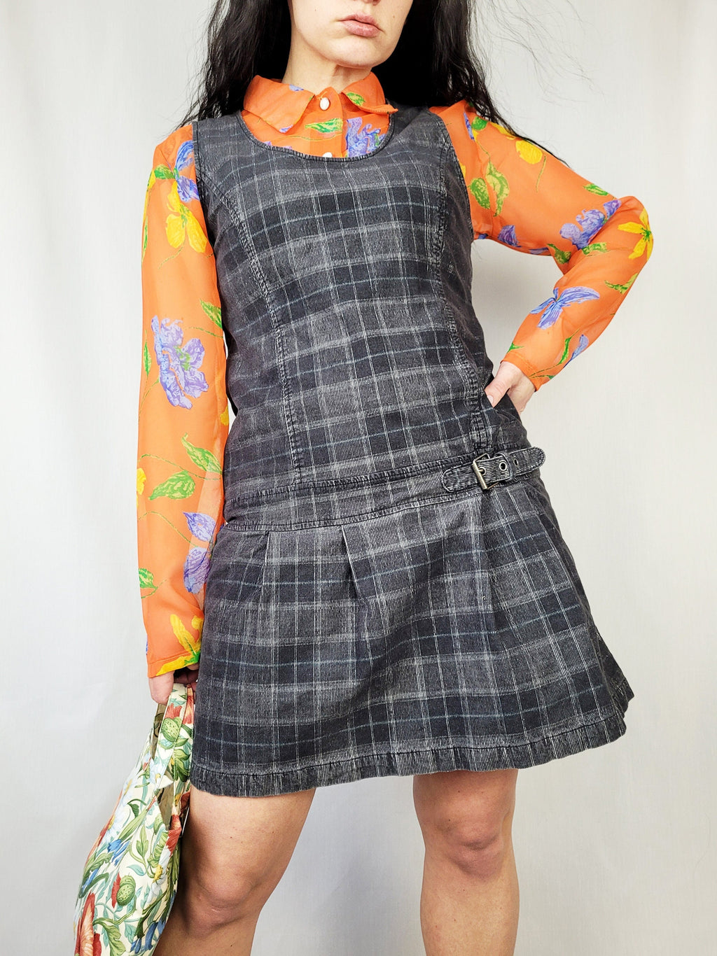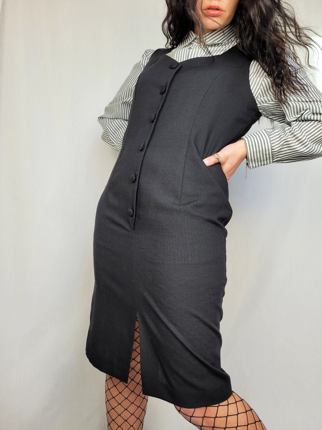 Vintage 90s grunge black velvet minimalist mini tunic dress